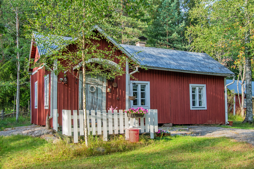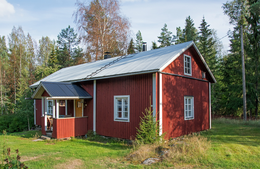 Pramilan talo joen rannalla.