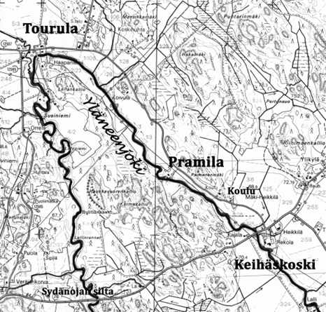 Varsinais-Suomi on jokien maakunta. Matalien savikkopeltojen halki virtailee hitaasti matalarantaisia pikku jokia. Kylät ovat pitkänä nauhana niiden varsilla. Sellainen on minun jokenikin, Yläneenjoki. Minun se on oikeasti vain siltä osin, kun Sillanpään luona Töyryn oja siihen laskee ja toisaalta joki jyrkässä uomassa alittaa Sydänojan sillan jatkaakseen kohti Rantakylää “Katinhäntää” niin kuin me kyläläiset sanoimme. Siihen väliin mahtuu vanhan äijän muistoissa monenmoista tapahtumaa Keihäskoskella, Pramilassa ja Tourulassa.