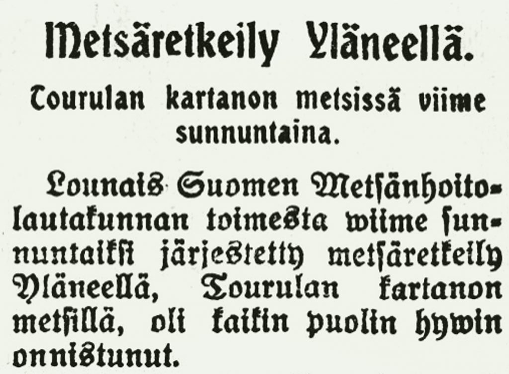 A. Ahlströmin ja myöhemmin Ahlström Oy:n aikana Tourulan metsiä hoidettiin suunnitelmallisesti ja uusimpien oppien mukaan. Metsien hakkuut suunniteltiin ja hakkuun jälkeen metsä kylvettiin tai istutettiin uudelleen. Erikoisempiakin puita kokeiltiin, niistä oli muutama vuosi sitten jäljellä vielä mm. siperianlehtikuusi- ja pihtakuusimetsä Lellankallion alapuolella.