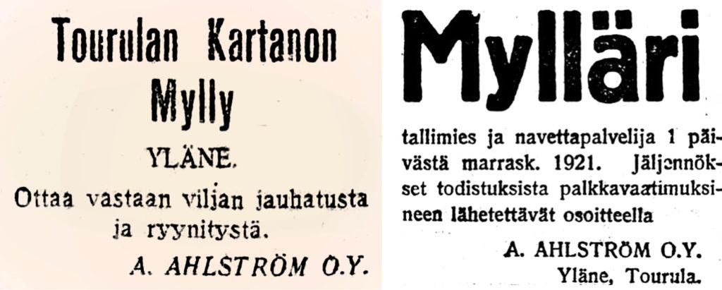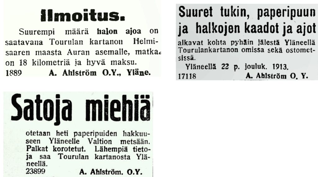 Ahlström-yhtiöt osti lisää maata Yläneeltä vielä 1900-luvulla ja omistaa metsää vieläkin Yläneellä tuhansia hehtaareja.