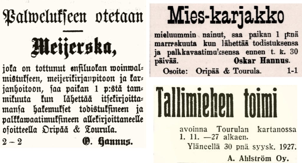 Hänen aikanaan Tourulassa oli jo kolme lampuotitaloa, Tourula, Peltoja ja Keskitalo ja näihin aikoihin Tourula on nimetty rälssitilaksi.