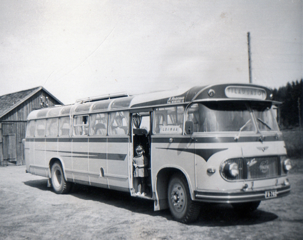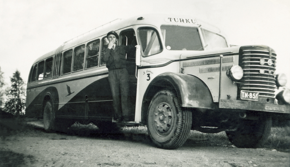 Yllä:Martti Heikkilä ajoi linja-autoa Tourulasta Turkuun 1950-luvulla. Alla:Oikealla Reinosen linja-auto 1960-luvulla