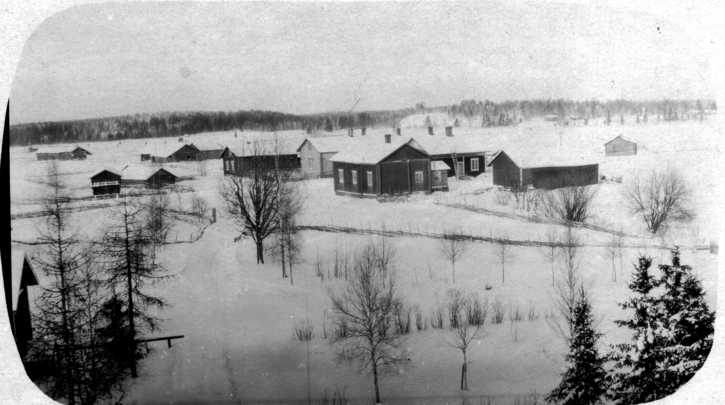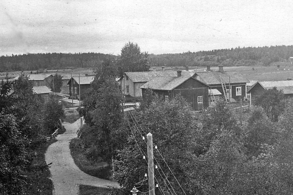 Keihäskosken keskustaa Rekolan vintiltä kuvattuna 1910-luvulla. Oikealla Knuutilan