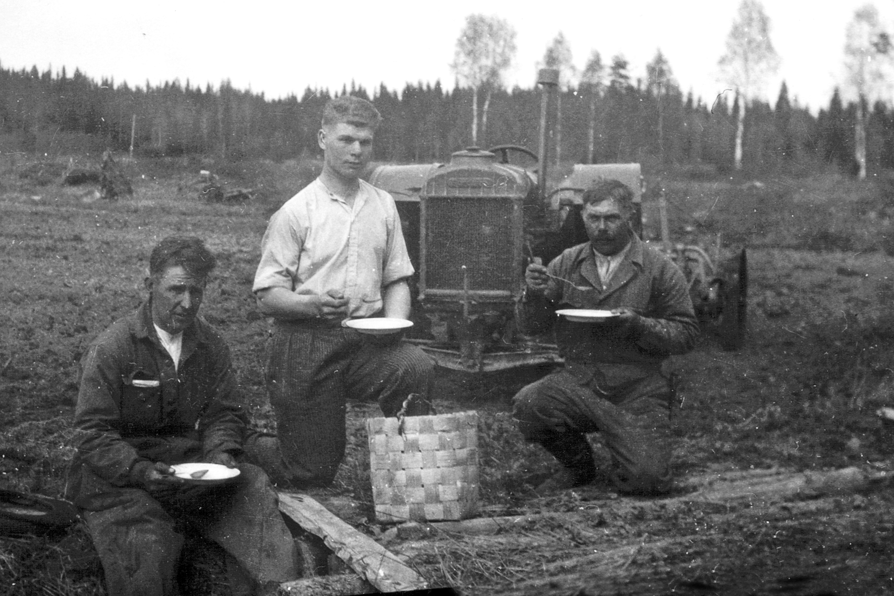 Rekolan pellolla ovat ojankaivuussa Urho Oksanen, Urho Heikkilä ja Lauri Kylänpää.